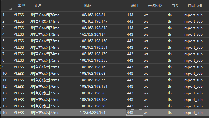 CF官方列表,推荐使用CM整理列表即可,该列表包含了大部分三网优选IP段,且会不定期更新维护; - 端口:默认为